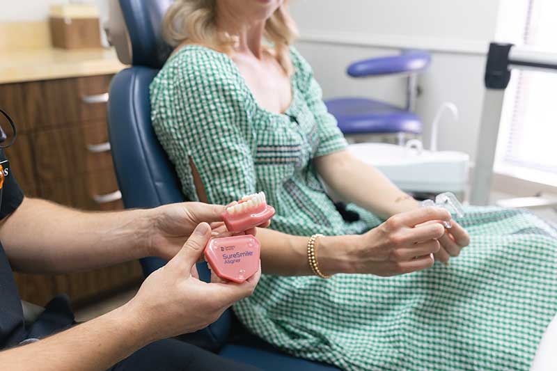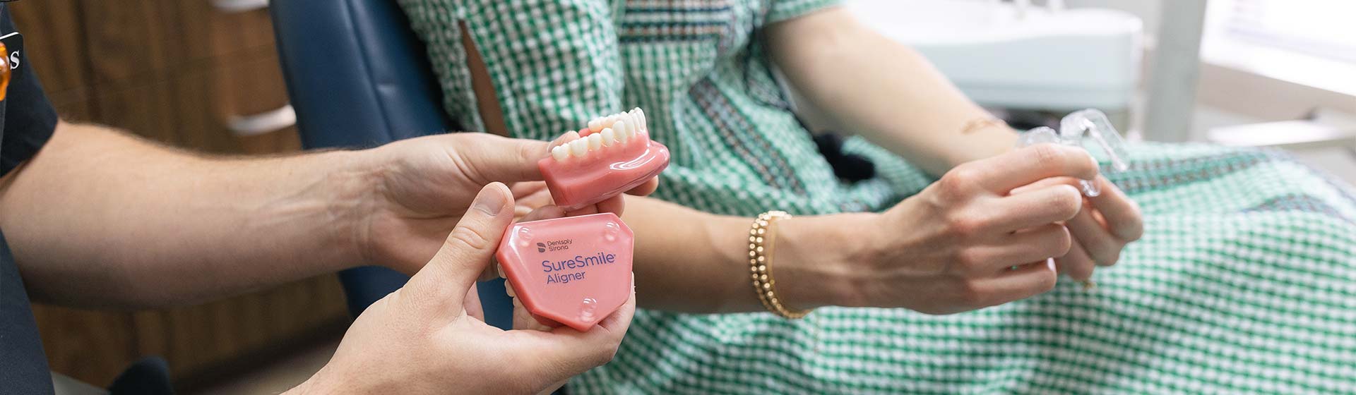 SureSmile's virtually invisible aligners make it easy to maintain your daily schedule without worry of metal braces or uncomfortable mealtimes. Since they're removable, you can easily take your clear aligners out to enjoy your favorite foods and maintain your regular brushing and flossing routine, making the treatment process more comfortable, effective and convenient