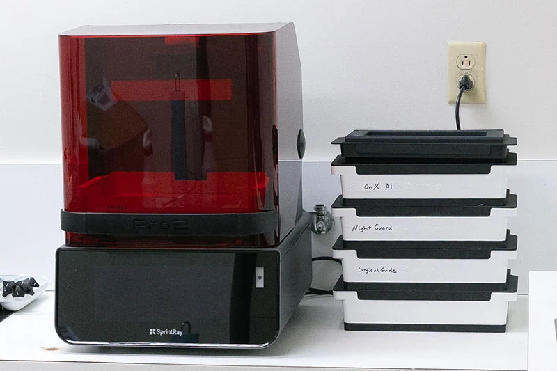 With the in-house SprintRay 3D printer at Danos Dental, our team takes digital dentistry to the next level with the ability to quickly creating a variety of dental appliances and models with precision. Utilizing the digital impressions captured by advanced scanners, we can 3D print surgical guides for implant placement, study models for treatment planning, craft temporary crowns and bridges, and create clear aligners. This technology allows several advantages for our practice, including faster turnaround times for certain appliances, reduced treatment costs, and greater control over the quality and fit of your final product.